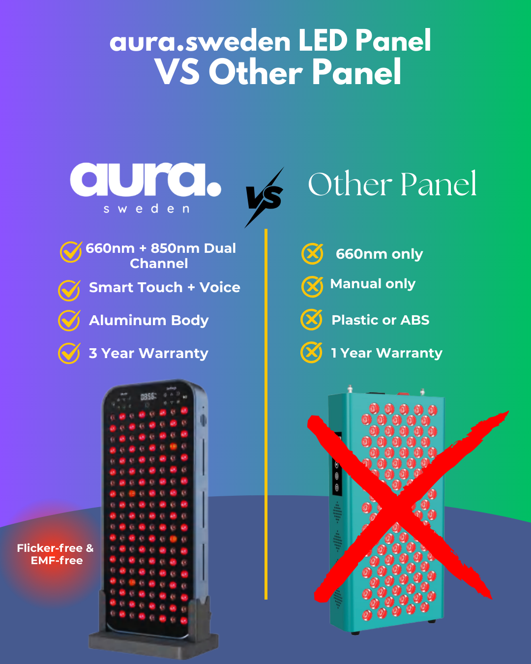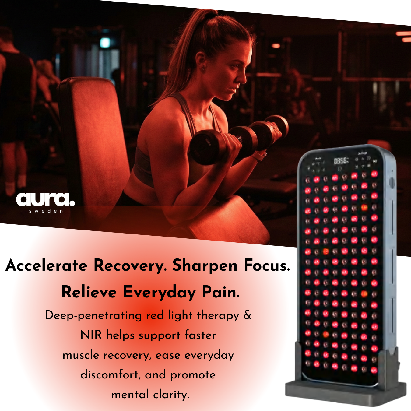 Elevate your wellness with the aura.sweden H760 Red & Near-Infrared Light Therapy Panel — a medical grade FDA Cleared device with 152 high-power 5W LEDs (Red 610–660nm, NIR 810–850nm) for deep cellular rejuvenation, skin renewal, and muscle recovery.